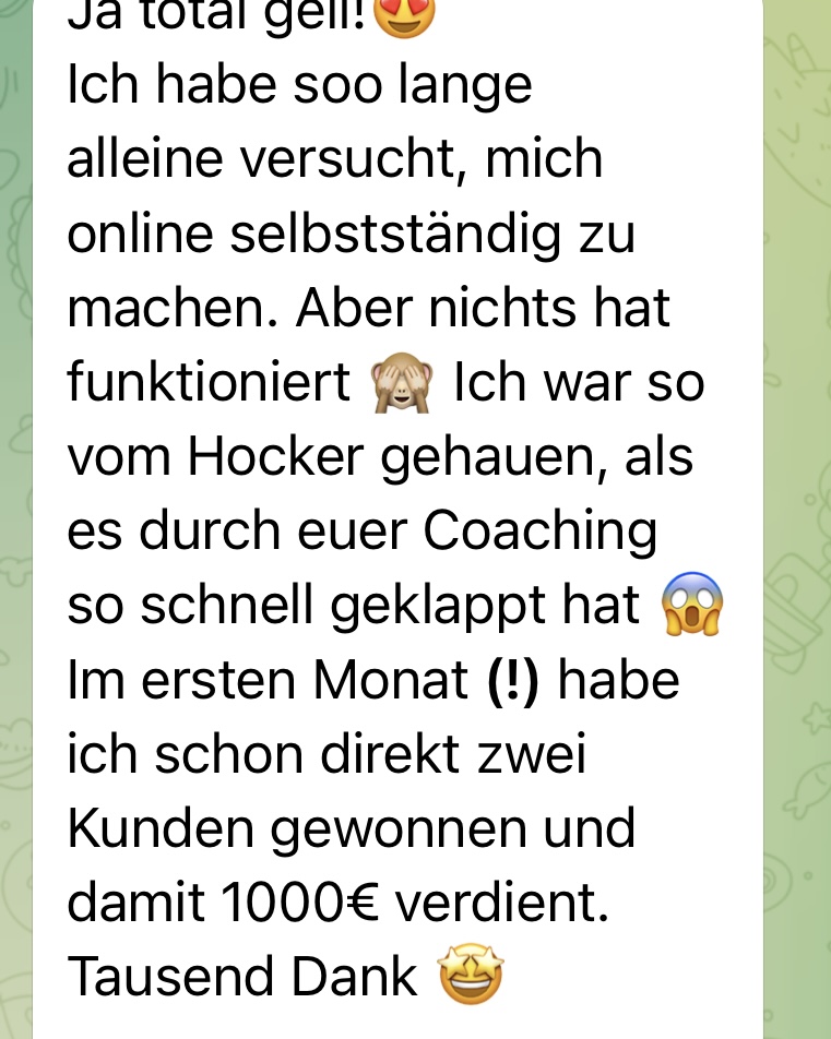 Durch jahrelange Erfahrung mit Onlinearbeit und Onlinemarketing brachten sie schon 350+ Menschen zu ihrem Ziel: Dauerhaft online Geld verdienen