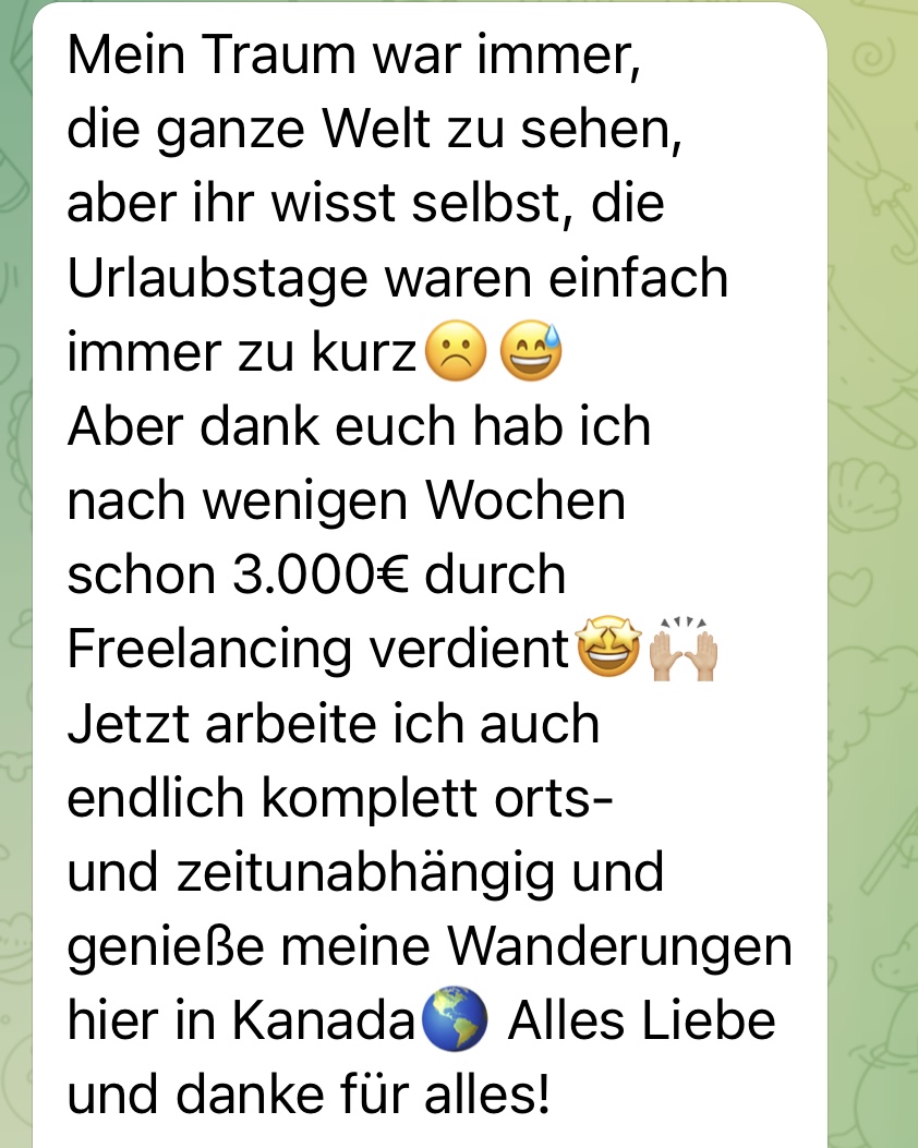 Unsicherheiten, ob du gut genug zum Online Arbeiten bist und ob es auch für Einsteiger ohne Erfahrungen Jobs gibt, sind nach dem Freelance for Freedom Festival Geschichte. Du bekommst deine nächsten Schritte an die Hand und weißt sicher, wie du an dein Ziel kommst und welche Fehler du vermeiden musst.